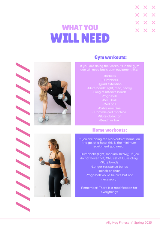 I started Ally Kay Fitness with 8 week programs so they are one of my favorite things, it is a one stop shop for everything you need to kick off your fitness journey at any time of the year! All the 8 week programs have workouts you can do at home or at the gym, an exercise library to show you how todo the exercises as well as multiple different nutritional resources.